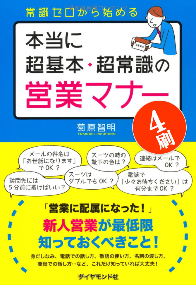 身だしなみ、電話の取り方、名刺の渡し方、敬語の使い方など、雑談にふさわしいテーマは何か、・・など、新人営業が「これだけは最低限知っておくべきこと」を厳選して紹介した本当に使える本です。